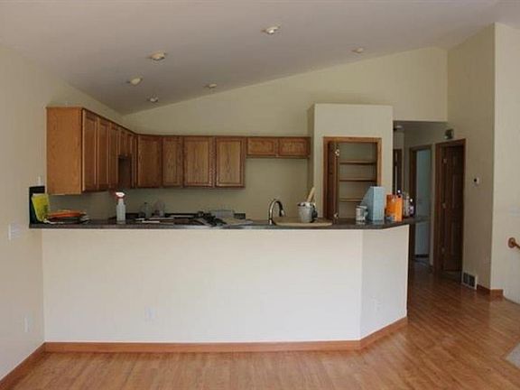 Remote location. Main level is mostly finished with vaulted ceiling and open concept with kitchen, dining and living area. Patio doors, but you need to add the deck. Walk out lower level offers opportunity for your design. 3/4 bath and office area already finished. Pole building with cement floor is 36 x 45. This is a short sale, subject to lender approval.
