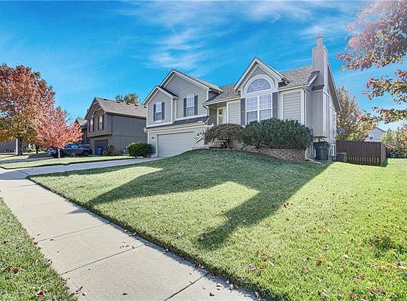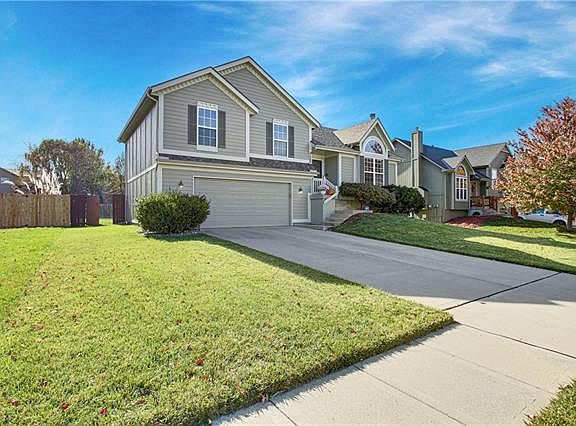 This home has had one owner and has been very well maintained. 3Bed 2.5bath, side to side split in coveted South Hamptons! The home has beautiful hardwood flooring throughout most areas of the home including the primary bedroom with its vaulted ceilings, walk-in closet, on suite bath, double vanity, and the added bonus of tub/shower combo which is rare in Olathe split level homes. Cold winter months are coming and the gas fireplace adds an extra level of warm & fuzzies to the season in the vaulted living room. Good sized kitchen with all black appliances including the easy-to-clean glass top electric range. The sliding door in the dining room opens up to the freshly painted deck which overlooks the HUGE, lush yard that your furry friends and littles can safely run around in knowing they are within the safety of the privacy fenced boundaries. Deep garage with plenty of room for future work bench and ample storage for lawn equipment with a door that goes straight to the yard for easy mowing! The basement has been finished out nicely with LVP flooring, half bath, and makes a great rec room or home office. Bsmt includes a room for storing all of your holiday decorations when not in season. New interior paint, newer exterior paint & siding (2020), sprinkler system, roof (2yrs old), HVAC (4yrs). Smart home features too!!!! New WIFI garage door opener, thermostat, ring doorbell, and Google Fiber! The fridge stays too! Quiet, friendly neighborhood is walking distance to Garmin and Olathe schools. With all of the updates there is nothing left for the new owners to do except MOVE RIGHT IN!!!