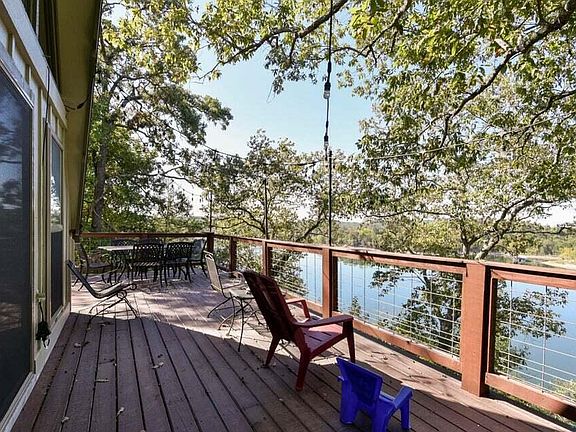 This lakefront property is a stunning home that boasts several updates, including a kitchen with granite counters and beamed ceilings that leads out to a recently redone deck with breathtaking lake views. With four bedrooms and 4.5 baths, there is plenty of room for guests, and the office with a separate entrance could be used as additional sleeping quarters if needed. Boat slip available for additional $$$$The master bedroom, located on the main floor, offers a gorgeous lake view through the sliding doors, and the master bathroom is equipped with a walk-in shower, bathtub, heated floors, and a large walk-in closet. Upstairs, there is a sweet bedroom with a half bath, and the non-conforming bedroom in the basement has a full bath that enters into the basement family game room.The guest quarters over the garage offer even more space for visitors, with a small kitchenette and another full bath. The property has been rewired and plumbed, has a water softener, and a Terminix policy. A whole house generator is also available to keep the home up and running during power outages.For entertainment, the property comes with a full-size shuffleboard table! The top windows in the family/kitchen area have been tinted to help with glare and sunshine. The 2 car detached garage has plenty of room for all you lake toys. Small fenced area off of deck for your furry family members. Located just 15 minutes from the Holiday Island/Eureka Springs area and a short drive to Roaring River, this property is perfect for those looking for a relaxing lakefront getaway or a day trip to nearby attractions in Branson.