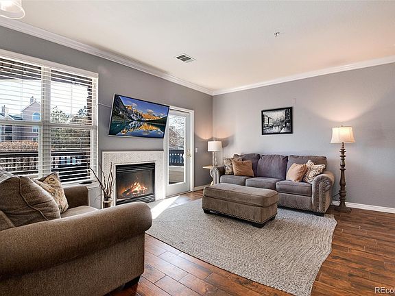 Nestled conveniently along the tranquil Powerline walking trail, this condo epitomizes comfortable community living. With main floor accessibility, there are no steps to navigate, ensuring ease of entry and movement within. Step into the welcoming foyer, complete with a spacious storage closet, setting the tone for a well-appointed living space. The living room beckons with a cozy gas fireplace, adorned by a beautiful stone surround, while woodgrain tile floors add a touch of elegance throughout. An open floor plan seamlessly integrates the dining area, illuminated by a modern light fixture for warm gatherings of family and friends. The kitchen exudes functionality, boasting ample cabinets (recently painted) alongside newer appliances, including a brand new stove/oven. The dedicated laundry room features a convenient stackable washer and dryer, and a sizable pantry for added storage convenience. Retreat to the generously sized bedroom, accommodating a king-size bed comfortably, enhanced by newer carpeting and a spacious walk-in closet. The oversized bathroom offers double sinks and soaking tub. Fresh paint accents the modern, renovated ambiance throughout, infusing the home with a renewed sense of style. Step outside to the private outdoor patio, an ideal space to embrace the laid-back Colorado lifestyle, complete with an additional storage closet. A one-car garage is designated to the unit, supplemented by ample additional parking ensuring convenience for residents and guests alike. Community amenities include swimming pool and clubhouse, while the entire neighborhood recently received a fresh coat of paint. Experience the epitome of relaxed community living in this meticulously maintained condo. Conveniently located to Aurora Town Center shopping and dining, the Anschutz Medical Center campus, Buckley Space Force Base, E-470, and area reservoirs, this charming home is ready to be made yours!