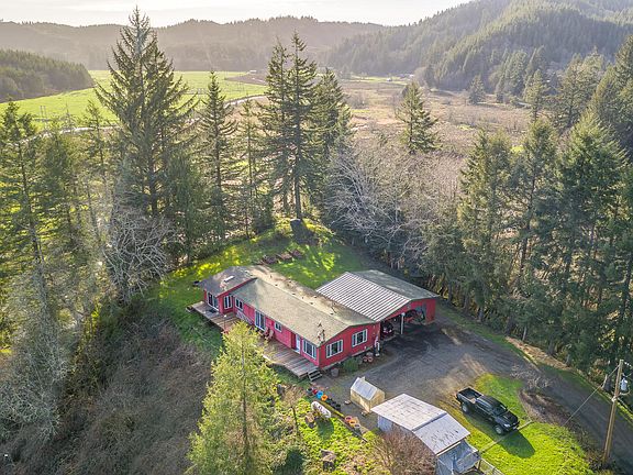 Country living, just 15 minutes from the beach! 12.82 ACRES of usable farmland, fenced pasture, and an elevated home site. Two creeks on the property. Outbuildings include 2160 shop/pole barn with bathroom, 1976 sf machine shed, 1408 sf barn, 4 horse stalls, goat pens, 2 greenhouses, small animal hutch, hay shed, and more. Single level manufactured home with 3+ beds, 2 baths, attached carport with huge pantry/storage room and bonus room (or 4th bedroom). New roof on house in 2015 and garage in 2017. Large flat yard with raised beds, fire pit, and a variety of trees/shrubs including cherry, plum, and blueberry. Perennial garden is planted. Negotiable farm equipment includes Kubota side-by-side, tractor, and more. Make an appointment to see this special property today!