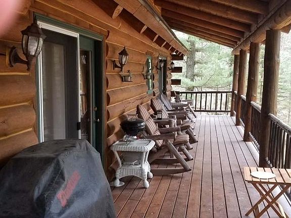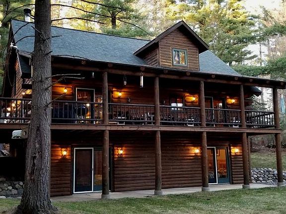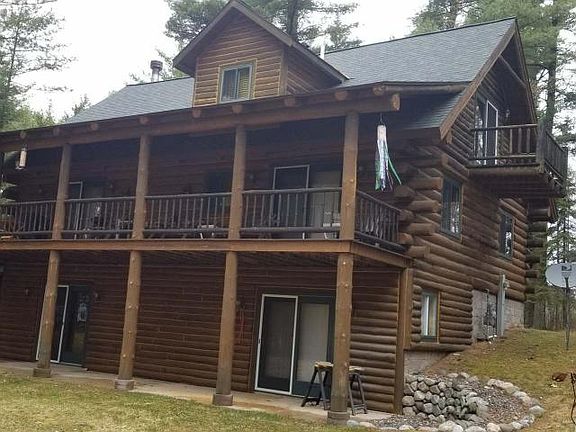 CALLA LILY LANE HOME - This beautiful 4br, 3ba full-log home has a great open-concept living area with vaulted 19-ft ceilings, and a beautiful floor-to-celing stone fireplace. There is another gas fireplace in the lower level for cozy evenings in the family room. The private setting has two covered 8x32 patios, an 8x32 deck and a 8x48 wrap-around deck to enjoy the 1.5-acre level, landscaped yard. Master bedroom on first floor and one on the upper level, another bedroom on main floor and a dormitory-style bedroom gives space for all your friends and family to stay Up North. The kitchen area has a nice breakfast bar and there is a first-level laundry. Window coverings are included, furnishings are negotiable. Large detached garage is heated. This is one of the best prices for an off-water property in Vilas and Oneida counties. On the snowmobile trail, close to Wisconsin River access and only about one mile to Eagle River for all your amenities.