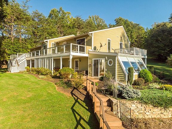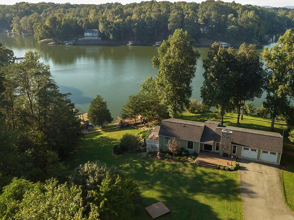 Rare Private Point Property has over 882 feet of shoreline with views of open water and a gentle slope to the water's edge. Tastefully renovated, this home has water views from every room, two wood burning fireplaces, open concept living with custom gourmet kitchen, granite counters, classic tile work & radiant heat floors. The spa style master bath includes carrara marble counters, radiant heat floors & leads to a private hot tub deck. The second master suite opens to a gorgeous sunroom with bold architectural beams. This home has five outdoor decks with the main deck of Trex maintenance free decking with glass panels. Upgraded light fixtures, solid core doors & hardware, two walk-in closets & surrounded by gardens with irrigation system. Long private drive leads to a true lake home.