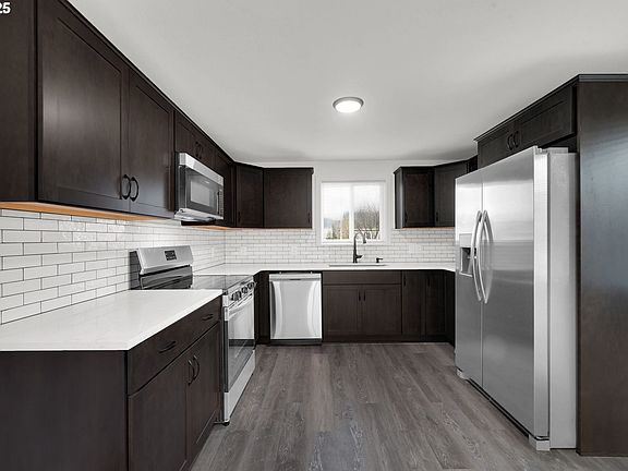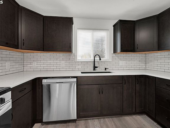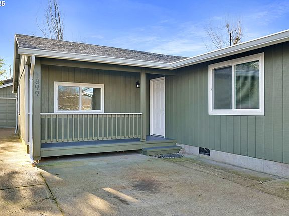 Completely renovated and move-in-ready 3-bedroom Springfield home featuring high-end finishes throughout. The open-concept design seamlessly connects the living room and kitchen, creating a bright and inviting space. The primary bedroom boasts an ensuite bathroom with a stylish tiled tub surround. Durable LVP flooring runs throughout, offering easy maintenance and cleanup. New vinyl windows and blinds adds to the privacy. The kitchen shines with custom cabinets, stainless steel appliances, and sleek quartz countertops. A permitted garage conversion has added a generously sized office and a third bedroom with two closets. The centrally located laundry room enhances convenience and includes washer & dryer! Outside, brand new roof, front porch, and exterior paint. The detached garage features fresh paint and updated lights. The backyard is fully fenced, perfect for pets, and includes a private deck and raised planting beds.Prime location close to shopping, coffee shops, parks, Willamalane, and Hwy 126 for an easy commute to Eugene. A pre-listing inspection report is available.