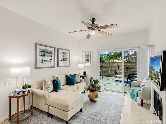 Very Desirable Location within Canyon View Community. Unit Faces Back of Complex Giving You a Private Entrance. Every Room ( except bathroom) has a Generous Size Window Giving this condo Lots of Natural Light. All Views are of either Greenery or the Patio Area. The Oversized Wrap Around Patio Gives Lots of Options for Entertaining or just Relaxing and Enjoying a Sunny California Day. You can access Patio from Side Gate near Front Door or through the Patio Slider off of the Living Room. Living Room has Cozy Fireplace, Ceiling Fan with Remote and TV Bracket Installed over Fireplace. Both Bedrooms have Newer Carpet and Ceiling Fans. Primary Bedroom has Updated Vanity with Granite Counter and Large Mirrored Closet Doors. Main Bathroom has Tub/Shower Combo, Upgraded Vanity with Granite Counter and Doors to Enter from either Primary Bedroom or Hallway.