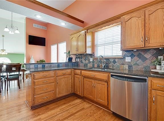 Welcome home to the storybook Madison Place subdivision! A warm sense of community & easy living invite you to this bright, generously EXPANDED California contemporary home. It is ideally positioned near Lone Elm, Cedar Lake & Arbor Lake parks, cafes, restaurants, shopping, & premier schools. This home has curb appeal galore w/fresh exterior paint! The front door opens to the living room that is adorned with cathedral ceilings & a cozy gas fireplace (with blower). The skilled, conscious homeowner has taken great care to improve & maintain this home. 2617 sq foot, 5 beds (1 non-conforming), 3 full baths, full walk-out/finished lower level. Stylish kitchen offers hardwood floors, stainless appliances, breakfast bar & flows through to dining & upper deck perfect for grilling out! Primary master is private, sunny, & spacious. Ensuite bath offers separate shower, double vanity & WHIRLPOOL tub, & HUGE walk-in closet. Ceiling fans & wood blinds everywhere! Lower level 4th bedroom has walk-in closet & 3rd full bath. Sub-basement has 5th non-conforming bed/office with murphy bed, closet & additional storage. Lower level is ready to welcome friends for a Chief's Super Bowl watch party! The bar has new Craftsman cabinetry, wet bar sink & butcher block countertops. It is adjacent to french doors that open to extended patio, ground level deck & HOT TUB with pergola. Freshly stained Lower & upper deck connect for perfect party flow. The backyard is large & level and has a freshly stained fenced. Laundry closet is on the main/bedroom level. Lawn & landscape are maintained nicely. New sump pump, radon mitigation, water softener & filter. Hurry to this loved, turn-key, move in ready home. A quick close is available. Easy access to I-35. What else do you need other than enjoying this lovely home in 2022 and beyond? What a wonderful spot to create future memories.