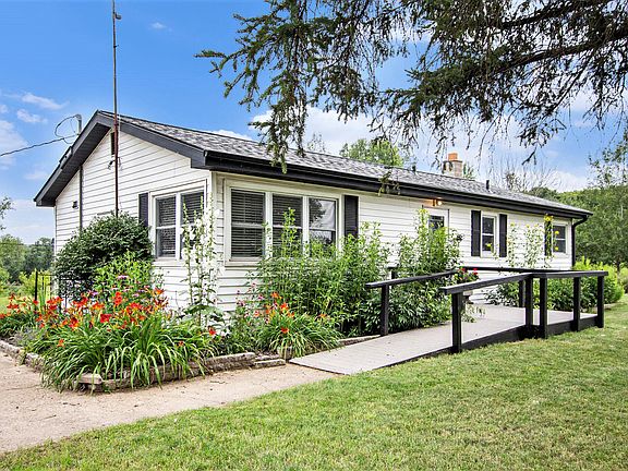 3 bedroom, 2 bath (1 up & 1 down) ranch style home located on a country corner acre, beautifully landscaped with perennials, offering a 2 stall attached garage, full walkout basement with kitchenette, remodeled bathroom, new countertop and updated appliances in the kitchen, new roof on house & garage, newer well (2 years ago), updated electrical panel, and a 2 story hip roof barn.