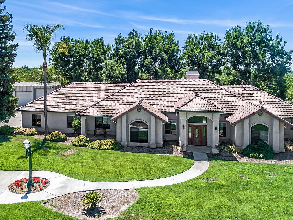 This beautiful 2,818 square foot Tuscan style home with open floor plan features 3 bedrooms and 2.75 bathrooms. The home has tile roofing, stucco exterior, remodeled kitchen with copper sink, remodeled master en-suite with large walk-in closet, walk in tiled shower and quartz counter tops, large expansive dining area, Great room with 10-foot ceilings and fireplace and additionally there is an office/bonus room. The home has hardwood flooring, granite counter tops, Venetian plaster, arched windows, and doorways, interior laundry and much more. There is a large shop on the property: 60 x 40 enclosed with skylights and 30 x 40 shop canopy extension. There is also a 25 x 40 carport for additional parking, recreational toys, or hay storage. This home also has a fenced horse corral. This beautiful custom home is nestled within a grove of neighboring walnut trees out in the country, with privacy that is highly desired for those wanting country living without the hassles of farming
