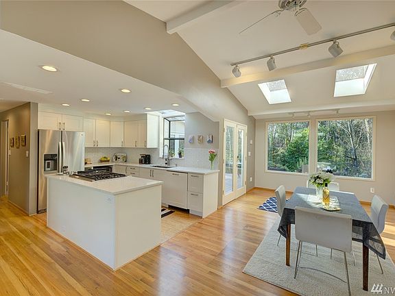 Mid-century modern homes are for entertaining inside and out! In classic style, the open design harmonizes with nature, bringing a sense of calm at the end of a hectic day and restoring creative energy for the next. A stylish new kitchen, and expansive master suite open to a spacious deck. Master has a reading area, bath and walk-in closet. The family room off the kitchen can be a gym, office, or 4th bedroom. Enjoy organic garden beds and Lot A Beach rights to 700 feet of waterfront and more!