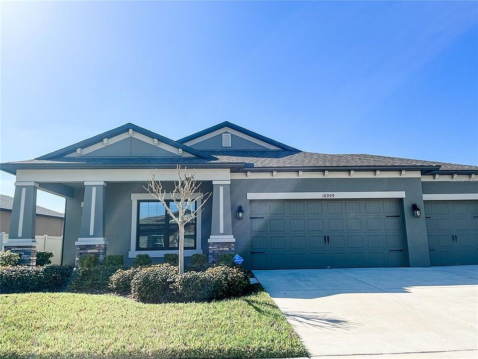 STUNNING AND BETTER THAN NEW! Welcome to the M/I Homes Picasso "C" Pool home, located within the highly desirable community of Talavera! Built in 2018, this model-like home showcase over 2,000 square feet of luxury interior upgrades as well as a pristinely maintained fully fenced yard featuring a salt water pool, screen enclosure and Sunbrella brand privacy curtains. As you enter from the gorgeous stone exterior and oversized front porch, you are greeted to an airy and spacious foyer that flows into a flex room and open concept living space. Boasting extra windows and and elegant tray ceiling, views of the backyard pool oasis draw you into the main gathering area that connects to the large and updated kitchen. The upgraded kitchen showcases beautiful staggered cabinetry, QUARTZ counters, double stainless steel sink, upgraded appliances, backsplash tile, closet pantry and eat-in island. The main area also opens to the resort style outdoor living space which features a SALT WATER POOL WITH SCREEN ENCLOSURE, pool lighting and step in entry- all canvased in decking. The HUGE screened area also features a trussed lanai perfect for entertaining, all while being fully fenced for relaxation and privacy alike. The spacious owners retreat contains ample closet space, step-in shower, quartz vanity and separate linen closet. The two additional bedrooms are nicely sized with great closet space. The 3 car garage is both spacious and functional with built-in shelving for storage. Laundry room has utility sink and cabinets. Community amenities are a must see and feature a resort-like pool, clubhouse, fenced splash pad, cabanas, playground, tennis and basketball courts. Sure to WOW and won't last long! Room Feature: Linen Closet In Bath (Primary Bedroom).