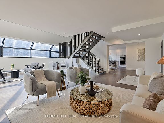 The epitome of refined urban living in the heart of Yorkville, this rare and fully reimagined penthouse residence spans over 2,800 square feet of meticulously curated space plus a 500sqft private rooftop terrace w/the best views in Yorkville, embodying sophistication and grandeur at every turn. Recently transformed with a brand new terrace deck, stunning new advanced window system designed to bathe the interiors in natural light, and new flooring on the main level, every detail has been thoughtfully considered to create an ambiance of timeless elegance. Soaring 18-foot ceilings in the dining area amplify the sense of drama and scale, while the expansive 500 square foot terrace, complete with gas and water hookups, frames mesmerizing views into the vibrant Yorkville landscape. The private quarters are equally impressive, highlighted by a stunning master ensuite crowned with a skylight that floods the space with natural radiance, creating a serene spa-like retreat. Directly connected to Hazelton Lanes and Whole Foods and mere steps to the world-renowned Mink Mile, residents are immersed in a cosmopolitan lifestyle surrounded by chic cafés, acclaimed bistros, and designer boutiques, all while enjoying the privilege of two-car parking and the security of a full-time concierge, making this extraordinary home the ultimate expression of Yorkville luxury living.