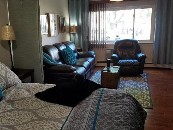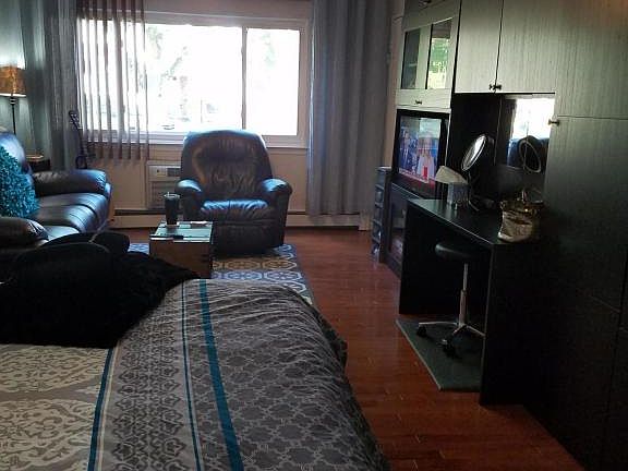 THIS IS THE ONE YOU'VE BEEN WAITING FOR! This fully renovated studio makes use of every nook and cranny. Expertly designed with special attention to detail and move-in ready. Modern kitchen with slate floors, 2 windows and all new appliances. Built-in wall unit makes for extra storage. Bath design is ultra sleek. Beautiful hardwood floors compliment the decor. All furnishings may be included at additional cost. You still have time to relax and enjoy the in-gound pool. Laundry facilities on site. Assigned parking and add'l for guests. COME SEE THIS FABULOUS STUDIO... YOU WILL NOT BE DISAPPOINTED!Coop approval required with $75 non-refundable app fee and required docs. DOG FREE COMMUNITY