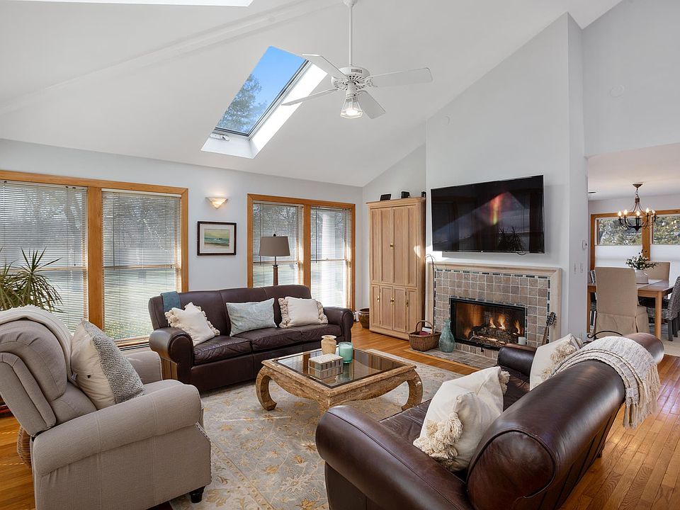 In East Moriches'most desirable neighborhood, you'll find this nearly 3000 sqft postmodern home on a flag lot. Enter via a private gated drive into your own 1.2 acre fenced sanctuary. Natural wood abounds in this light filled home. Everything has been updated & beautifully maintained. Eat-in-kit w/stainless & Granite. Double sided fpl between LR & FDR. Huge MBD Suite w/fpl + add'l 3 BDs & 2 1/2 bths. The backyard is vast & features a 20'x40' pool w/ brick surround. Garage, Full Basement.