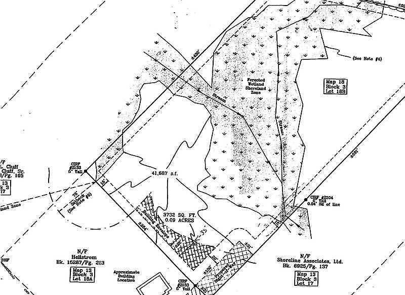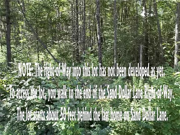 Property is accessed through a Right of Way. It is surveyed and all wetlands have been delineated. There is a small building envelope on a beautiful wooded lot. Stream runs through property. Septic design is available.