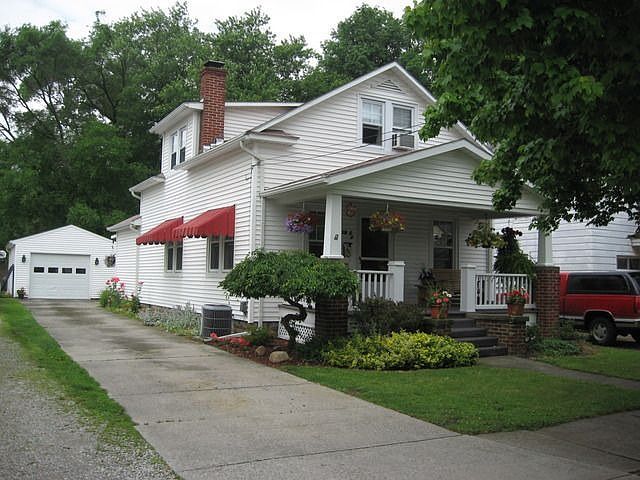 New hot water heater, updated electric and plumbing, vinyl replacement windows. Lots of storage in the walk-in attic. Concrete drive leads to detached, 16 x 24 garage. Beautifully landscaped.
