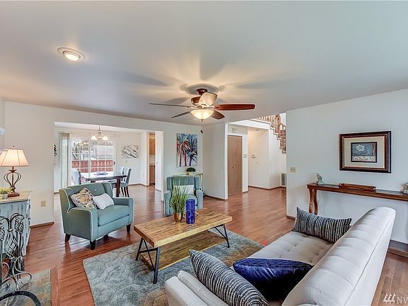 Move in ready 1835 sqft 3 bed, 2.25 bath home located in a welcoming cul-de-sac. Walk into the living room with updated wood burning fireplace. New carpet and gorgeous hardwoods. Kitchen with stainless steel appliances. Dining off kitchen leads to huge entertainment deck with hot tub. Main floor half bath with washer & dryer included. Large 2-car garage with ample storage. Head upstairs to a large bonus room, master bed w/attached bath & fireplace and 2 additional bedrooms. Close to amenities.