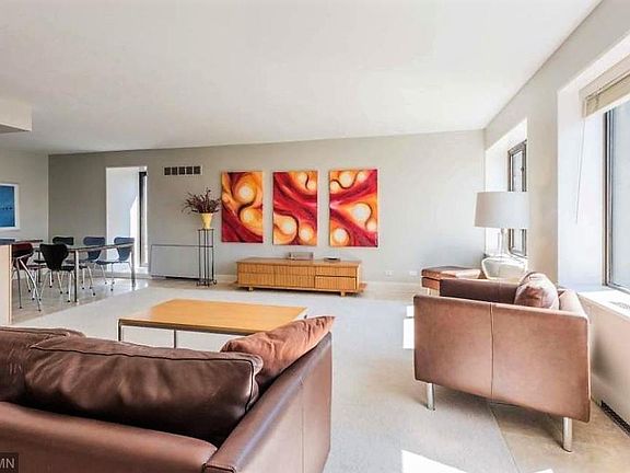 Penthouse style condo in the heart of downtown MPLS. The designer highlighted the southern exposure with warm sunlight & unmatched views of downtown MPLS + amazing river views. This home boasts of custom cabinets, Granite counter tops, SS Appliances, in unit washer/dryer, Wide plank pine floors, Italian lime stone, 6 panel doors + Princeton trim. Fantastic pool + courtyard, Fitness center, Tennis courts, roof top oasis, library, party room, guest suites. Furniture included in sale.