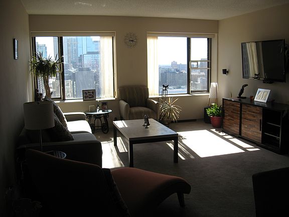 South facing, corner unit. Natural bright light, well maintained, spacious and fantastic views of downtown or the Mississippi river. Only 6 neighbors on the floor and 2 floors from the rooftop.