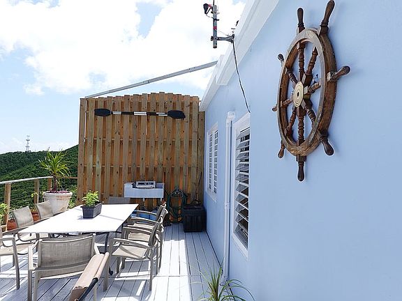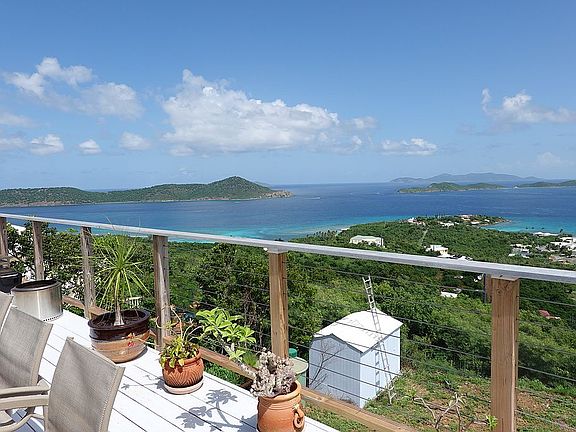 Call Jamie for information at 340-643-5577. This open floor plan 2 bedroom - 2 1/2 bath home has a 14 x 32ft deck and one of the best views on St Thomas, if not the best view. Conveniently located on the preferred east end of the island. Property has an unobstructed view of St John, Tortola, Jost Van Dyke, Pillsbury Sound and another 12 islands. Amazing sunrise and moonrise. Great afternoon shade and reflected sunsets. Very quiet neighborhood close to Red Hook Ferry terminal and many beaches. The main house support walls, foundation and roof are concrete. It is very hurricane safe with custom window and door covers. We sustained no hurricane damage from Irma or Maria. House, deck and parking area are on the same level. This property has plenty of room for a future large house to be added and is zoned for the addition. Recent upgrades include new deck, new roof coating, new bathroom, new paint, new septic system, 2 AC units and a solar backup system for power outages. House is being sold fully furnished. This house faces the trade winds and makes AC unnecessary. Nearby yacht club and marinas make boating convenient. There is also a storage shed on the lower part of the property that is about 8 x 12. This home technically has a Smith Bay address, but it is not considered part of Smith Bay as much as it is in Pillsbury Heights. Entrance to this neighborhood is from the opposite side of the island from Smith Bay.