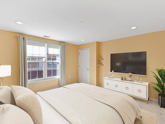 Discover this stunning 2-bedroom, 1.5-bathroom condo in downtown Bayonne, offering 877 sq ft of spacious and bright living space, private oversized deck and 1-car garage parking! Natural light floods the living/dining area, accented by recessed lighting and hardwood floors. The contemporary kitchen features birch cabinets, granite countertops, and stainless steel appliances. Both bedrooms offer generous closet space. Located in a tranquil neighborhood, this condo provides easy access to NJ Transit Light Rail, shopping, dining, and all Bayonne amenities. Experience the ideal mix of style, comfort, and convenience in this downtown treasure. *virtually staged photo