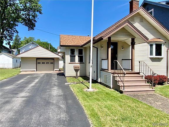 Cozy three-bedroom ranch. Updated kitchen with Corian countertops. Spacious living room/dining room with gas fireplace insert. Den/with multiple windows .All mechanics have been updated in the past three years new furnace with central air and Hot water tank. 150 amp electrical service with permanent standby generator. Tear-off roof in 2018. Basement has additional full shower unit. All appliances are included. Detached one and a half car garage with electric and garage door opener. The lot is a double size lot with 80 foot of frontage with a double wide blacktop driveway. Home does need a little bit updating on the interior. Very well maintained home. There are delayed negotiations until June 6, 2024 at 12 PM when all offers are due.