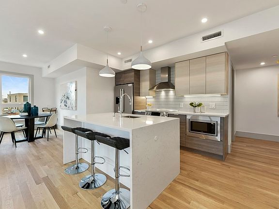 Welcome to modern urban living at 19-23 Clapp St Unit 7! A gorgeous corner unit with private roof deck, nestled within a brand new ELEVATOR building w/ GARAGE parking, situated in the highly sought-after Polish Triangle. Steps away from JFK/UMASS T, bustling South Bay Center w/ dining options, state-of-the-art AMC theater & access to highways & downtown. Step inside this stunning 2-bed unit with an alluring primary suite & 2 full baths, an abundance of windows with great natural light. Open floor plan made for entertaining & dining area that beckons to be enjoyed. Modern two-tone kitchen, w/generous island, pristine white Quartz countertops & Bosch stainless steel appliances. White oak hardwood floors exude timeless elegance, contemporary finishes, high ceilings, paint colors & design courtesy of Boston's own Louis Ashman. Walk up from your unit to a private roof deck with bar area, wine refrigerator at the top landing! Fitness center & mailroom included for your convenience.