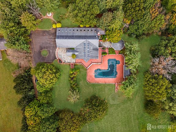 Expansive Equestrian Estate on 16 Acres - A Rare Offering in Millstone Township Set on nearly 16 serene, farm-assessed acres, this sub-dividable equestrian estate offers incredible versatility for agricultural or residential use. It is perfect for those envisioning a working farm, equestrian lifestyle, private estate, or wellness retreat. The stately full-brick main residence welcomes you with a stone porch, circular driveway, and oversized Florida sunroom. Inside you will find four bedrooms, three office rooms, and four and a half bathrooms. The kitchen features soaring vaulted ceilings with a commercial-grade exhaust system, ideal for the home chef. A finished wаlk-out basement provides an additional kitchen, bedroom, full bathroom, and laundry room, making it an excellent mоther/dаughter setup. Outdoor living is elevated with a resort-style 75,000-gallon saltwater pool, summer kitchen, and brick pergola. A separate guest house offers soaring ceilings in the living room with a fireplace, two bedrooms, and two full bathrooms. It is perfect for extended family or live-in help and connects directly to the barn and stables. Designed for equestrian living, the property includes a 12-stall horse barn complete with attic and loft space, as well as a 10,000 square foot warehouse/greenhouse suitable for storage or agricultural use. Expansive open land provides ample space for horses, crops, or other ventures. A long private driveway enhances the seclusion and privacy of this extraordinary estate. Located in a quiet and prosperous area with top-rated schools, convenient access to major highways, and proximity to New York City, this property combines tranquility with convenience. Properties of this size, flexibility, and potential rarely come to marketdon't miss your chance to own this exceptional Millstone estate.