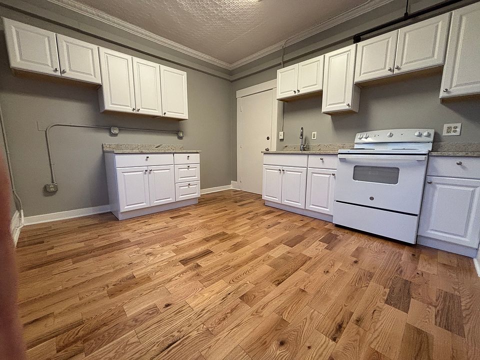Newly renovated! Bright hardwood floors, new cabinets, granite counters and newly tiled bathroom. Extra high ceilings with oversized windows. A unique and functional apartment right next to downtown with on site laundry. Communicate directly with the owner. One year lease required. Owner is responsible for water. Tenant pays for utilities and is responsible fridge. On site laundry available.