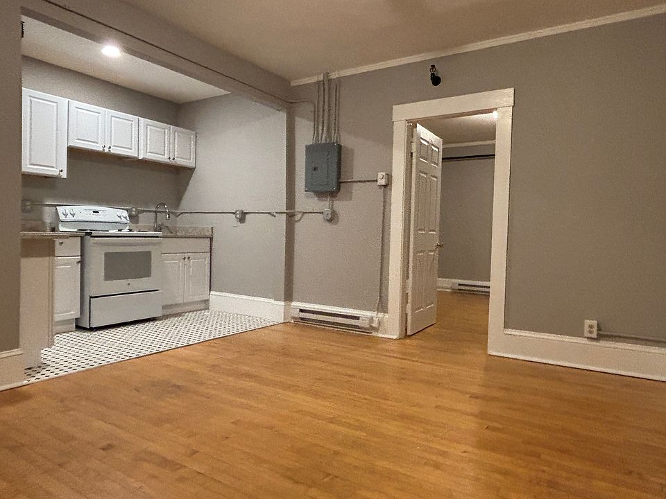 Newly renovated with new cabinets, granite counters, fresh paint, hardwood floors and tiled bathroom and kitchen. A sunny apartment with oversized windows and high ceilings. On site laundry room and block away from the downtown and parking. Owner pays for hot water. Tenant pays for all other utilities and must provide their own fridge. Reach out now to set up a showing.