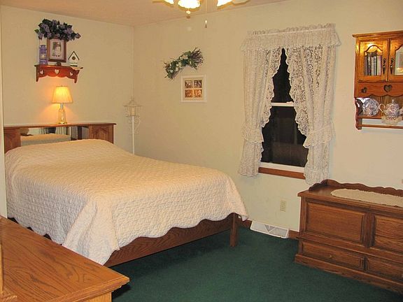 Excellent condition Ranch home 3 Bedrooms 3 Bathrooms Lots of extras 1344 sq ft . Built In 2004. On .19 acres . Nice open layout - living room, kitchen and dining area. Solid oak trim, oak 6 panel doors 3 full bathrooms. Master bath with large garden tub. Upstairs or downstairs laundry. Central air, gas heat. Large 2 car heated garage. Full dry basement with lots of storage. Very nice back yard with open view. Concrete patio off of living room. Prepped for central vac. Reverse osmosis water system. This is a well- cared for home on a quiet street, not far from 241. Enjoy birds and squirrels and the beautiful view of trees on the south side. The back yard has open view to the west of an expansive mowed field. . .and great view of sunsets . Spend very little time with outside up keep at this place, yet still enjoy the country surrounding you! Some special features this house offers are purified drinking -water system, garbage disposal, set up for central vac, Anderson windows, solid oak doors, several ceiling fans, and expensive lighting fixtures. The kitchen offers lots of cupboard space with its many attractive oak cabinets, including several built- in china cabinets with glass doors. Pantry is beside refrigerator, and even more pantry space option in hall closet close by. The dining area connects to the kitchen, all open and great for every- day use and entertaining. The living room is also open layout with large front door (with side lights) to the porch, and side patio door to the newer patio. Each of the three full bathrooms has linen closets or shelves. All bathrooms include bath room exhaust fans, and plenty of lighting. All main floor bedrooms are nicely separated for privacy, each having its own area, away from other bedrooms. Master bedroom (12 x 16) includes a walk in closet and master bath with large garden tub. Other two bed rooms (9 x 13). The full 8 foot wall, 12 block basement has so many possibilities for use. . ..including laundry area and a second living room area. Two huge closets are lined with shelves for LOTS of storage space. Two large nearly finished rooms, and one full bath, complete this very functional basement. Plenty of room for office, guest room ect. Attached garage( 28 x 32) is larger than most. . .with space for two vehicles and plenty of work space besides! Garage is well insulated, and offers attic space. Two lilac bushes, rhododendrons, and azaleas are some of the landscaping that is here to enjoy. A mini barn that has been repainted and re-roofed is an option with the property.