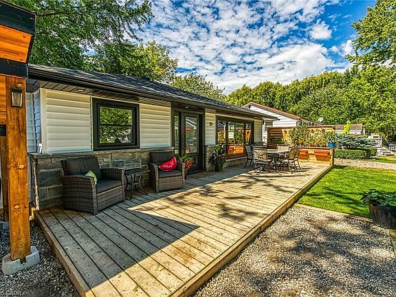 Check out this "Lake Erie Gem" located in the heart of Haldimand County's Cottage country. This extensively renovated fully winterized bungalow is minutes from Selkirk, 45 min commute to Hamilton/Brantford and highway access. This home offers a peaceful lifestyle with an endless list of upgrades. Located on a dead end street, come enjoy the lake lifestyle. Enjoy the lake view from the newly constructed 30x10 deck on the front, leading to the Custom built grilling gazebo(2025). Exterior renovations include new siding(2023), new roof (2025), built in irrigation system(2025),and updated entry doors. Inside leads you to a bright, open concept living room /kitchen area that offers new vinyl plank flooring, built in feature fireplace, new picture window (2025) newer Shaker style kitchen with S/S appliances and quartz counterops. New 3 piece bath with walk in shower (2025). New water system complete with UV Filters and Softener. New Furnace, blown in insulation & Central Air (2023). This is a must see!