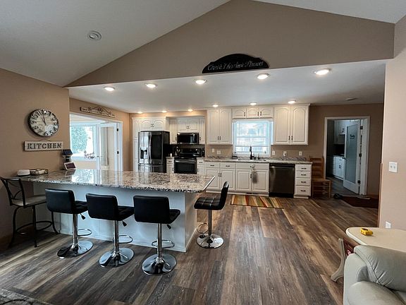 This is a must see house in a fabulous location with a park across the street and walking distance from schools. This 4 bedroom, 3 bathroom home is ready to move into with a remodeled kitchen with peninsula with granite counter tops and seating for 6, walk-in pantry with sink & refrigerator, main floor bathroom expanded and remodeled with laundry. Main floor features a sunroom with french doors and steps to a large outdoor patio area. This home has a large familyroom downstairs with gas fireplace and small kitchenette with sink & refrigerator for entertaining guests. The 3-car garage is attached to the house with storage in front of main garage plus attic space storage over garage. The garage is insulated and heated and the floors are finished. This property features another dettached garage that is insulated and a small shed in the backyard. Home also has underground sprinklers and a well for watering.