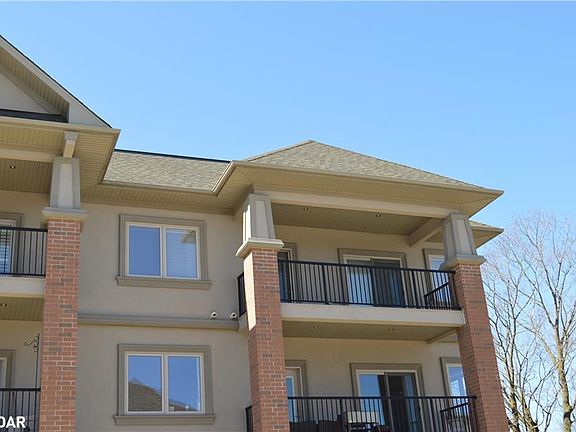 This is your opportunity to own a rarely-offered condominium in Elmvale! Well cared-for unit has kitchen w S/S appliances & pot drawers, open to living & dining areas. Easy-care laminate flooring and custom blinds. There are 2 walk-outs from the livingroom & kitchen to large balcony, overlooks communal BBQ area. This spacious unit has a large master w ensuite bath & double closets. Second bedroom has a large closet as well. Your private laundry is in your suite and your parking spot #51 is conveniently close to the front door. The building also has a great party room with kitchenette & powder room. The charming town of Elmvale offers shopping & dining amenities, a short drive to beaches & boating in Midland/Wasaga Beach.