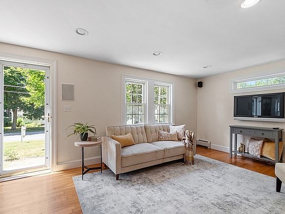 Looking to move into Westford? Look no further than this bright and welcoming classic New England Cape! A stately maple tree graces the front lawn and offers dappled shade to flowering perennials and walkway leading to sandstone and brick front steps. Inside you find hardwood flooring throughout, 3 bedrooms and unlimited potential! The sun filled living room boasts a stylish clerestory window and wood burning fireplace. Updated kitchen has maple cabinets, pantry, granite counters and breakfast bar. Kitchen and dining room offer to access to backyard. The full bath has newer tiled tub/shower and vanity. More room in the garage, storage shed and full, unfinished lower level. Set on a pretty lot abutting conservation land, this home is in a prime location near award-winning schools, less than a mile to Forge Pond town beach and playground, a short drive to shops/restaurants and Route 495. Energy efficient thermopane windows and tankless Rinnai hot water system.