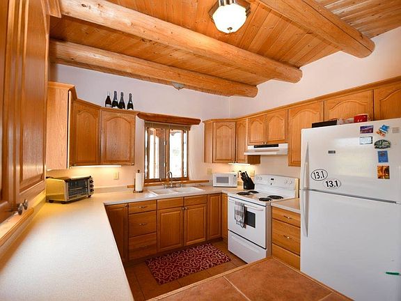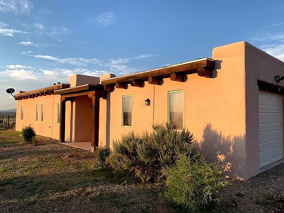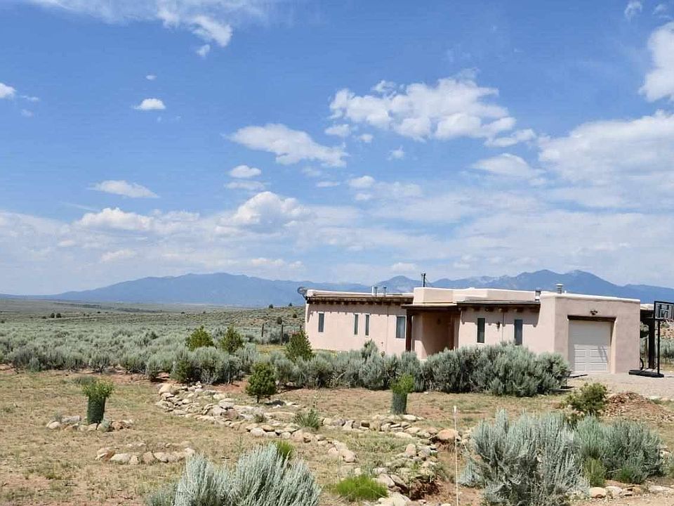 ROOM TO ROAM! There are so many things about this well-maintained 1,360 sq. ft. 2BR/2BA adobe home on 1.28 view filled acres. Open floorplan with high ceilings. Lots of windows for light and views but also lots of wall space for art or photos. In-floor radiant heating, tile floors, viga ceilings, skylights, kiva fireplace + woodstove. Master bedroom has ample closets and bathrooms feature built-in storage cabinets. 1-car oversize garage with laundry area and storage space. Entry and Rear portals provide outdoor living spaces, privacy, and shade with panoramic mountain & sunset views. Fenced yard perfect for dogs. Looking for outdoor activities? Golf is almost out your back door at Taos Country Club, hiking is nearby at the Rio Grande National Monument. Enjoy nearby hiking, biking, fishing, and other outdoor recreation. Convenient access to the Town of Taos and Taos Ski Valley.