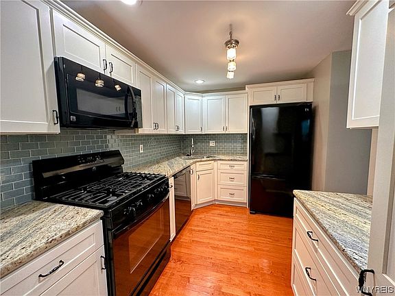 Welcome home to your 2-story townhouse in the quaint village of Fredonia! This end unit backs up to a wooded lot on a dead end street. This property has been well maintained and freshly painted. The full basement has all new vinyl flooring, new drywall, and spectacular lighting. The kitchen has been upgraded with all new granite countertops, includes all appliances and washer/dryer. Each of the bedrooms upstairs have their own full bathrooms. Has an attached garage, double driveway, and a 8x10 shed for added storage. 5 minute drive to SUNY Fredonia, walking distance to the Fredonia Opera House and walking distance to all the restaurants and shops in the village of Fredonia!