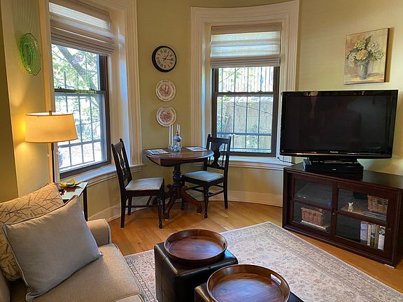 Exceptional one bedroom duplex with separate study charmed with two fireplaces, exposed brick and bow windows. Located on the first and second floors with up to date kitchen and bath, in unit washer and dryer and ONE FULL PARKING SPACES is included in the price. Heat and hot water are included. Can be rented earlier 6/15- 8/1