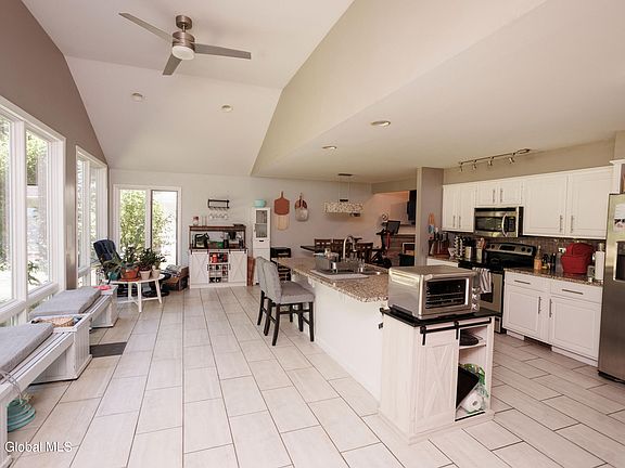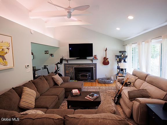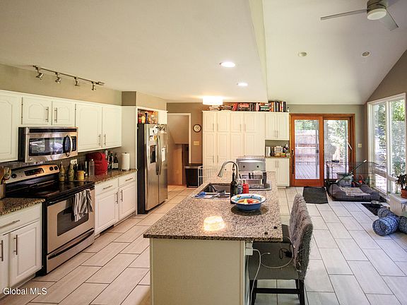 Quintessential Old Delmar home loaded with renovations! Beautiful kitchen is perfect to entertain with large island, massive floor to ceiling windows, radiant heat floors. Upgraded recessed lighting, vaulted ceilings, and wood burning stove complete a cozy living room setting. Three bedrooms upstairs, with additional fourth bedroom or large office/den downstairs. Home sits on a large private wooded lot, just a block away from Hamagrael Elementary. Close proximity to town park, Bethlehem Library, and top rated Bethlehem School District.