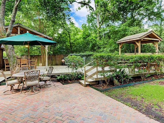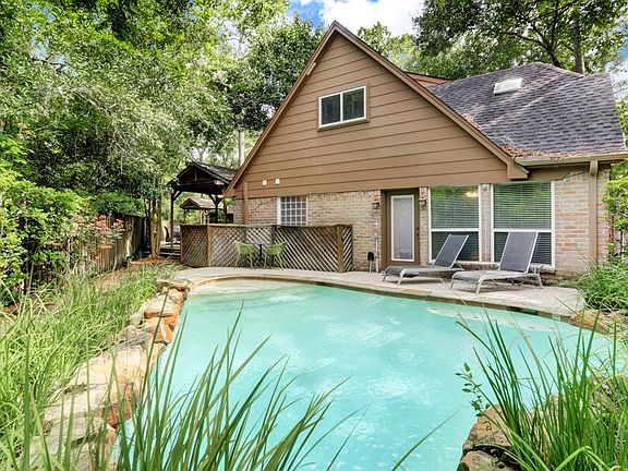 You'll love this cul-de-sac home tucked away under mature trees that is also very private backing up to the greenbelt area. Walking trails are close and you are just minutes from I-45. This 4 bedroom 3 1/2 bath home has large closets and the downstairs master bedroom has a door leading you to your private pool that can be used any time of year! The expansive outdoor deck is great for entertaining and it even comes with a mosquito misting system. The kitchen, master bathroom and additional bathroom upstairs have granite counter tops. You'll find a new 5 burner gas cooktop in the kitchen that opens up to a formal living room or office space. A great bonus to this home is the 295 sq. foot air conditioned/heated office or storage space with a separate entrance, which is located behind the two car garage. Make an appointment to see this home today.