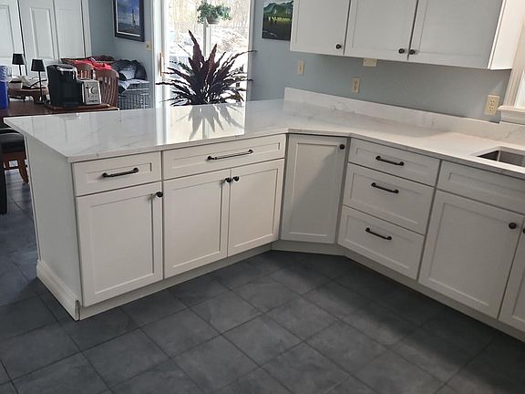 Partially fenced yardQuartz countertopsHalf bathSpacious deckFirst-floor bedroomLaundry areaTile flooring
