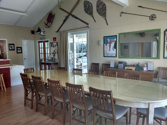 The large open concept Grand Room with cathedral ceilings housing an open galley style kitchen with island that overlooks dinning area with seating for 24, a fireplace with a seating area, 2 baths and access to a large raised deck and to the backyard deck hot tub. The bedrooms are dispersed with 7 located in 2 wings North and South, the master bedroom with en suite and office area located in the loft area over looking the fireplace and the Moat Mountains is my favorite room.