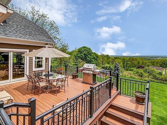 Beautiful custom home with AMAZING mountain views! Brand new Trex deck! Spacious & open floor plan. Extensive trim work & detail fill every room. 1st floor guest suite. Located in quiet cul-de-sac. Gorgeous gourmet kitchen with center island, granite and breakfast nook. Family room with vaulted ceilings and amazing views. Living room with coffered ceiling and fireplace. Amazing master suite with vaulted ceiling, 2 walk-in closets and a beautiful bathroom with Saturnia stone, dual sinks and jacuzzi tub. Finished walkout lower level complete with recreation room, wet bar, wine cellar, game room and full bathroom.Could be a perfect in-law suite. Garage is heated and has tile flooring. Entertaining backyard with brand new Trex deck and gorgeous landscaping with sprinkler system.Sound system. Fresh paint.