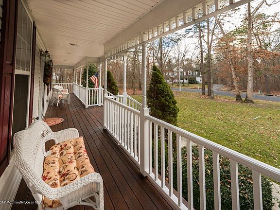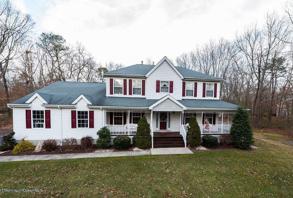 Lovely five bedroom Victorian Style home on Amanda Lane, one of the most desirable streets in Howell. Located on 1.4 acres and in a wooded setting this immaculate home welcomes you with a wrap around porch perfect for enjoying leisurely, relaxing afternoons. The in-law suite offers space for parents or adults children. The sunken family room with cathedral ceilings and gas fireplace adjoins the eat-in kitchen with a center island. There is a spacious master bedroom with en-suite bath and walk-in closet plus three additional bedrooms. The backyard offers a deck for summer enjoyment plus a separately fenced in-ground pool. This gracious home will welcome you! Peace of mind too with a 1 year AHS home warranty. Country living yet convenient to Rt 9 shopping.