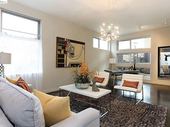 Sunniest unit in a pet-friendly complex - south east facing with large windows! Welcome to West End Commons a beautifully designed gated community by award-winning architect David Baker. This light-filled townhouse offers a flexible three-level layout, private outdoor space, and all the modern conveniences of urban living. Property Features/Layout: 2 Bedrooms / 2 Bathrooms + large 450sq.ft 3rd bedroom/studio/work/play area 1st Floor: 1 bedroom/work/play area + 1 full bath (shiny concrete flooring) 2nd Floor: Kitchen, open-concept living room and private balcony/patio (wood flooring) 3rd Floor: 2 bedrooms + 1 full bath (carpet flooring) Highlights/Standouts: - Gets so much natural light that you don't need to turn on your lights until sunset - Tall 11-foot ceilings on all floors with large windows - Energy saving BOSCH appliances - Part of a gated community with each unit getting a secure carport right in front of the unit (2nd car, if any, can be parked on the street next to the unit) - EV charger friendly - Pets and kids friendly community (with a little play park area and dog poop pickers planted in the complex) - Can now have 3 different garbage bins (Trash, Recycles and Compostables) for pickup (West Oakland/Emeryville had only 2 till last year in most places) - In-unit washer and dryer - Private outdoor balcony Community/Location Amenities/Highlights: - Gated community with landscaped courtyards, mature trees, and some walking paths - High Walk Score (75) and Bike Score (95) - Walk to Target/HomeDepot/Chic-Fil-A/etc Emeryville shops (0.3 miles) - Walk to a Michelin star pizzeria and a new brewery around (0.2 miles) - Walk to the newly opened Peralta Market with eateries, breweries and coffee shops (0.3 miles) - Walk to 3 amazing coffee shops, many gyms, good hole in the wall restaurants in a warehouse-y feel-y West Oakland. My go-tos include the Pacific Pipe climbing market, Peralta market, Proyecto Diaz Coffee, Highwire Coffee, BRIX Brewing, Jun Pizzeria, Pacific Pipe climbing gym, Soba Ichi, etc. - 1.5 walkable/cyclable miles to 4 BART stations (West Oakland, 12th St, 19th St and McArthur). - Very easy access to I-80, I-580, I-880 - Less than 10 minutes drive to Downtown San Francisco Additional Info: - Some basic furniture has been purposely kept around since it goes well with the layout of the house and isn't easy to rebuild (2 corner mirrored closets. 5 X 5 chest/drawers, kitchen island, wall mirror, etc.). If not needed, i'll remove them - Photos reflect prior staging - 1 year lease term and then month-month - Modifications to the unit are allowed and negotiable