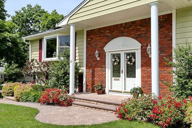 Unique Custom Over sized Bi-Level, professionally landscaped and exceptionally well maintained. Vaulted foyer w/custom oak curved staircase, you will see the elegance and pride of ownership. There are 4 spacious bedrms and 3 full baths. Generous eat-in kitchen w/center island, granite counters, custom cabinets and a large bay window. Crown molding, formal Dining Room, wood floors on the main level. Master bedroom w/ walk-in closet. Enjoy energy efficient living w/Marvin Low-e windows in the living area, New roof, Tesla Solar System, New Furnace and H/W and upgraded electrical system. Custom draperies and shades included. Glass and screen enclosed patio room w/tile floors, Underground sprinklers. This home is move-in ready.