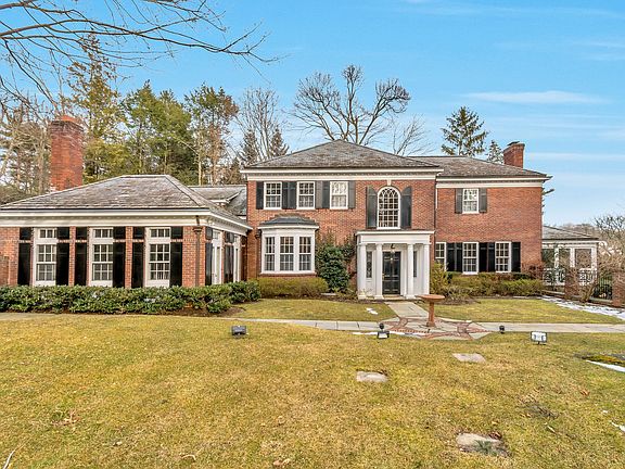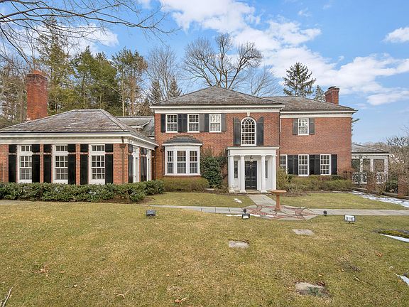 Imposing 1929 brick Georgian Colonial set high on an acre of lush, private grounds. Motivated by 18th and 19th century English manors, this architectural gem flawlessly combines history and character with 21st century amenities. A trove of exquisite details enrich this updated and expanded home. Inside, a gracious entrance foyer with custom wood floor, graceful main staircase and fine millwork welcomes you. Immediately you are struck by the home's elegance and well-proportioned rooms. Step down into a stunning living room enhanced by high ceilings, marble fireplace, extensive crown moldings, and many oversized windows. A richly paneled library, filled with custom bookshelves and a fireplace is well situated for intimate gatherings. A grand dining room with moldings and fabric walls is a splendid setting for all celebrations. A bright, large kitchen with a butler's pantry flows into the family room. The cathedral-ceilinged family room has fireplace and French doors that fill the room with light. Upstairs, is an engaging master suite, with custom marble bath and fitted closets. In addition, there are four other bedrooms and three baths. A professionally landscaped property exhibits formal gardens, mature trees, a heated pool, and a delightful pool house - complete with wet bar, changing room and full bath. Security system and full house generator are added benefits. You have to see this impressive home to appreciate all of the quality and tremendous value.