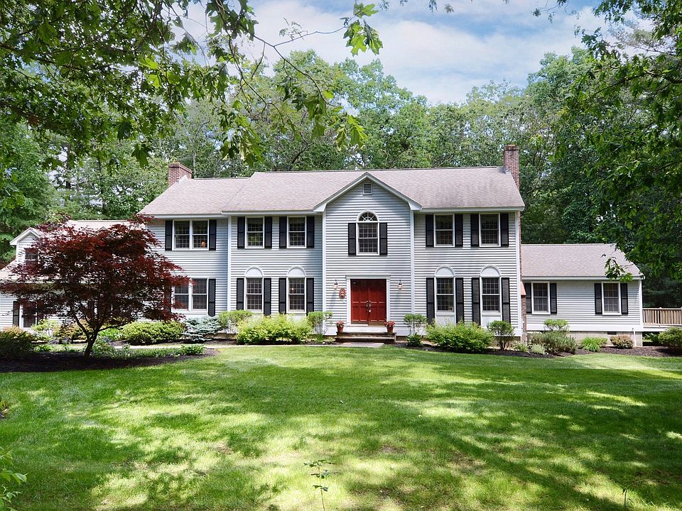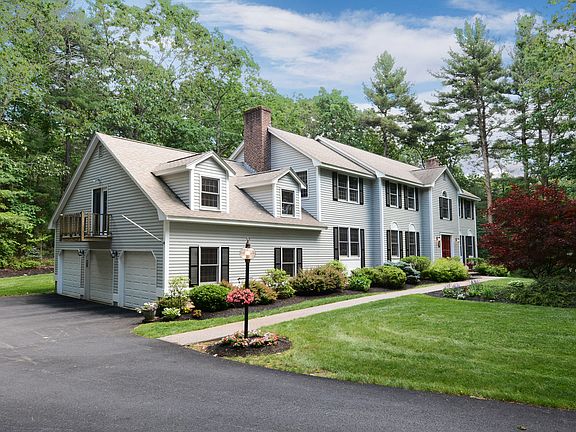 EXPANDED COLONIAL WITH LOTS OF OPTIONS! This impressive home is situated at the end of a quiet cul-de-sac in the heart of Boxford. The expansive 1st floor boasts a bright eat-in kitchen with granite countertops, stainless appliances and contemporary lighting, open floor plan to the family room with fireplace and access to the back deck. Grand foyer with stunning bridal staircase and contemporary lighting leads to a large master bedroom w/fireplace and 4 additional bedrooms on 2nd floor. The game room is well-situated over the garage with its own half bath and juliette balcony. Potential in-law/au pair suite on the 1st floor with ensuite bathroom, a sitting room w/wet bar and access to main and side decks. Beautifully landscaped grounds and two decks offer private serenity.