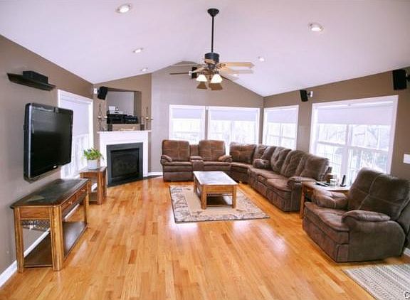 THE WOW FACTOR! BEAUTIFULLY UPDATED & EXPANDED. FABULOUS OPEN FLOOR PLAN FEATURES A GREAT ROOM EFFECT WITH FABULOUS GORUMET KITCHEN WITH ISLAND/BREAKFAST BAR FOR 8, SPECTACULAR MAIN LEVEL FAMILY ROOM WITH CATHEDRAL CEILING, GAS FIREPLACE & SLIDERS TO DECK. LOWER LEVEL REC ROOM WITH FIREPLACE & 4TH BEDROOM. NEWLY FINISHED WOOD FLOORS.