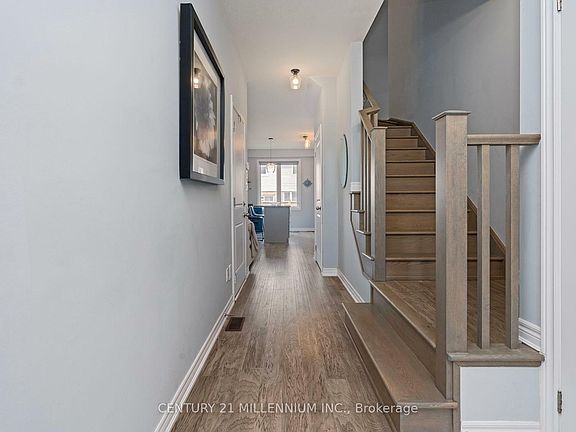 Welcome to 19 Arietta Lane a beautifully upgraded 3-bedroom, 4-bath executive townhome nestled at the end of aquiet cul-de-sac in one of Stoney Creeks most desirable neighbourhoods. Offering 1,310 sq ft above grade plus afully finished basement with an additional 650 sq ft of living space, this home delivers nearly 2,000 sq ft of totalcomfort and functionality. Enjoy engineered hardwood throughout, custom wainscoting on the main floor and upper level, and an upgraded open-concept kitchen with backsplash, large functional granite countertop island & extra pantry storage. The home features two kitchens ideal for extended family living or investment potential and a private garage with inside entry and automatic garage opener, central vacuum. All light fixtures, solar blinds and downstairs red retro fridge included. The spacious primary bedroom includes a private ensuite and convenient upstairs laundry. Large windows throughout allow natural light to fill the home, creating a bright and inviting atmosphere. Step out to the backyard deck (fully fenced yard to be completed summer 2025) and enjoy privacy and space in a family-friendly community.Situated next to St. Gabriels Elementary School, Winona Park (home of the famous Peach Festival), and justminutes from Costco, Metro, Starbucks and more. Ideal for first-time buyers, downsizers, and investors with rentalincome potential of approx. $3,000/month. Low condo fees with your front lawn maintenance included. Visitor parking available. Move in, turn key ready!