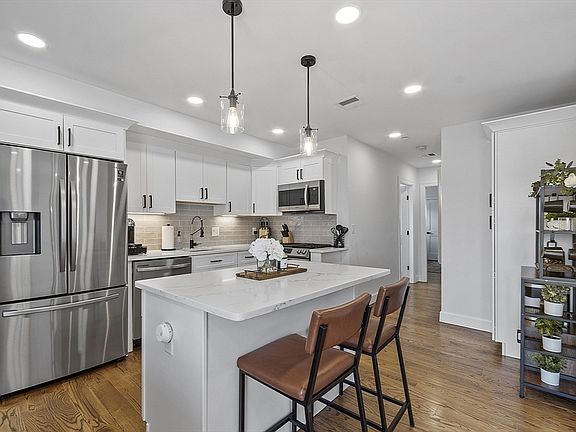 - Features: Flooring - Hardwood, Flooring - Wood, Kitchen Island, Recessed Lighting, Stainless Steel Appliances, Gas Stove, Lighting - Pendant